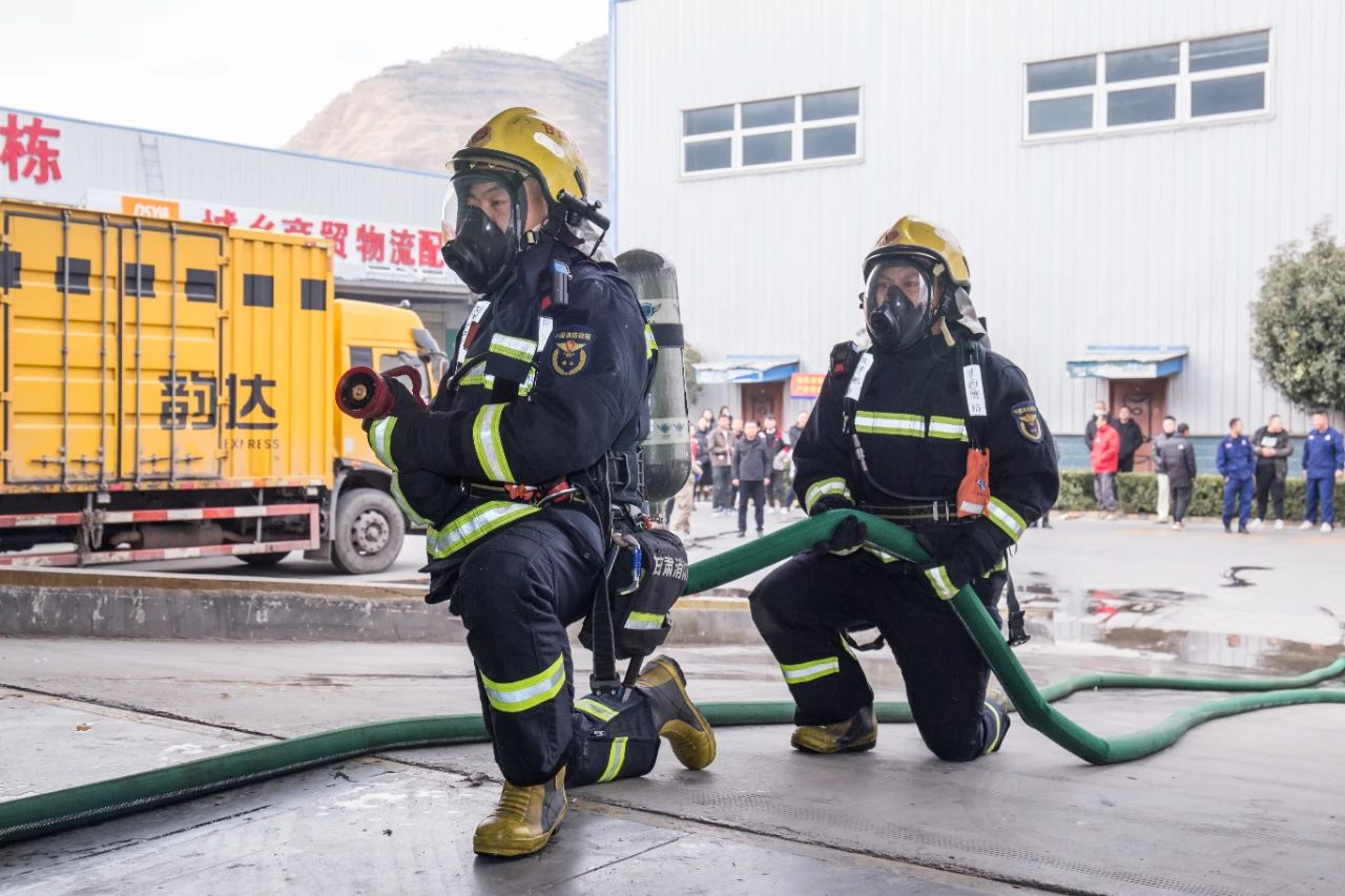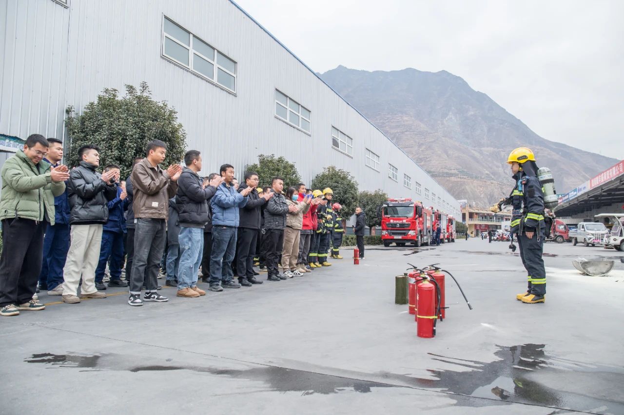 與此同時,武都區消防救援大隊接警后迅速抵達現場,與園區消防隊員密切配合,利用專業消防設備有效控制火勢,并成功將其撲滅,整個演練過程緊張有序,雙方協作緊密,達到了預期的效果。